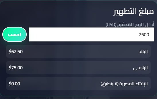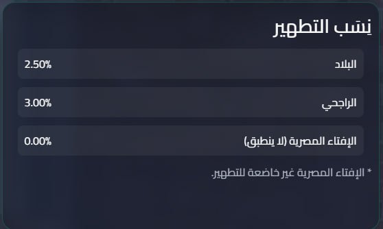 بل يُظهر نسبة التطهير المطلوبة ومبلغها تلقائيًا بناءً على بياناتك الاستثمارية.