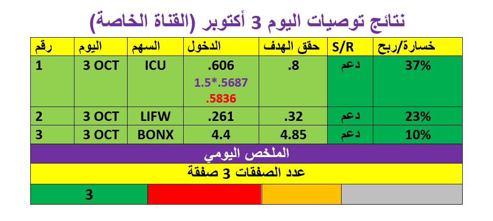 نتائج توصيات القناة الخاصة لتوصيات الاسهم 3 أكتوبر 2023 : استطاعت أكاديمية صائد الاسهم الامريكية تحقيق نتائج مبهرة, توصيات الأسهم ليوم 3 أكتوبر 2023 في إجمالي الصفقات الرابحة بفضل من الله تعالي