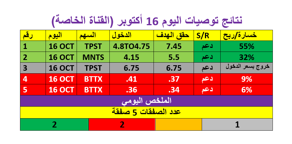 نتائج توصيات القناة الخاصة لتوصيات الاسهم 16 أكتوبر 2023 : استطاعت أكاديمية صائد الاسهم الامريكية تحقيق نتائج مبهرة, توصيات الأسهم ليوم 16 أكتوبر 2023 في إجمالي الصفقات الرابحة بفضل من الله تعالي